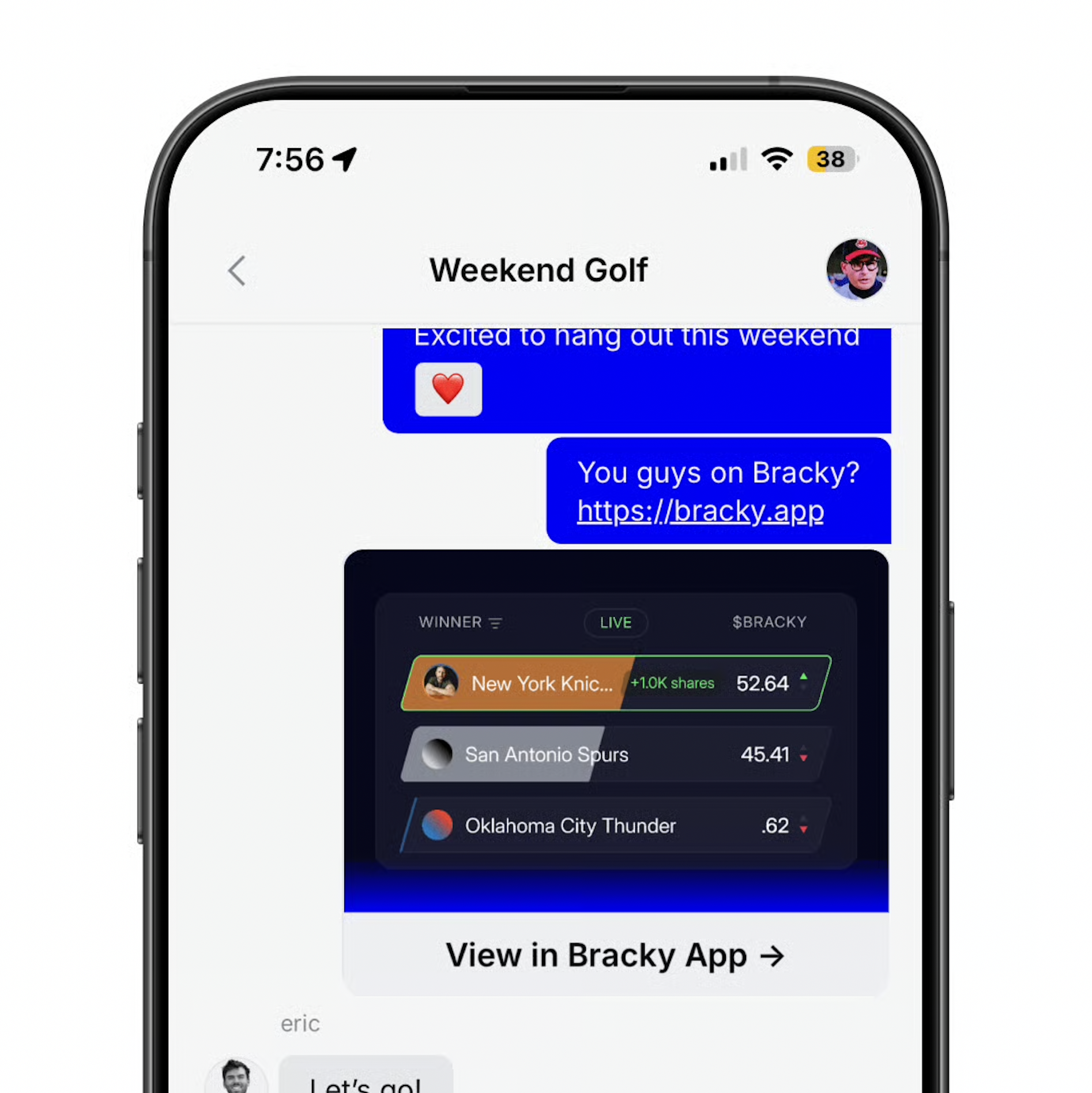 Users never leave the conversation, and discovery is social by default. Group chat is the social graph.