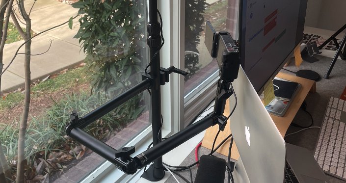 - ($40) Flex arm (the flex arm allows you to use the light stand for the camera so it’s slick and seamless. Check the pic below)